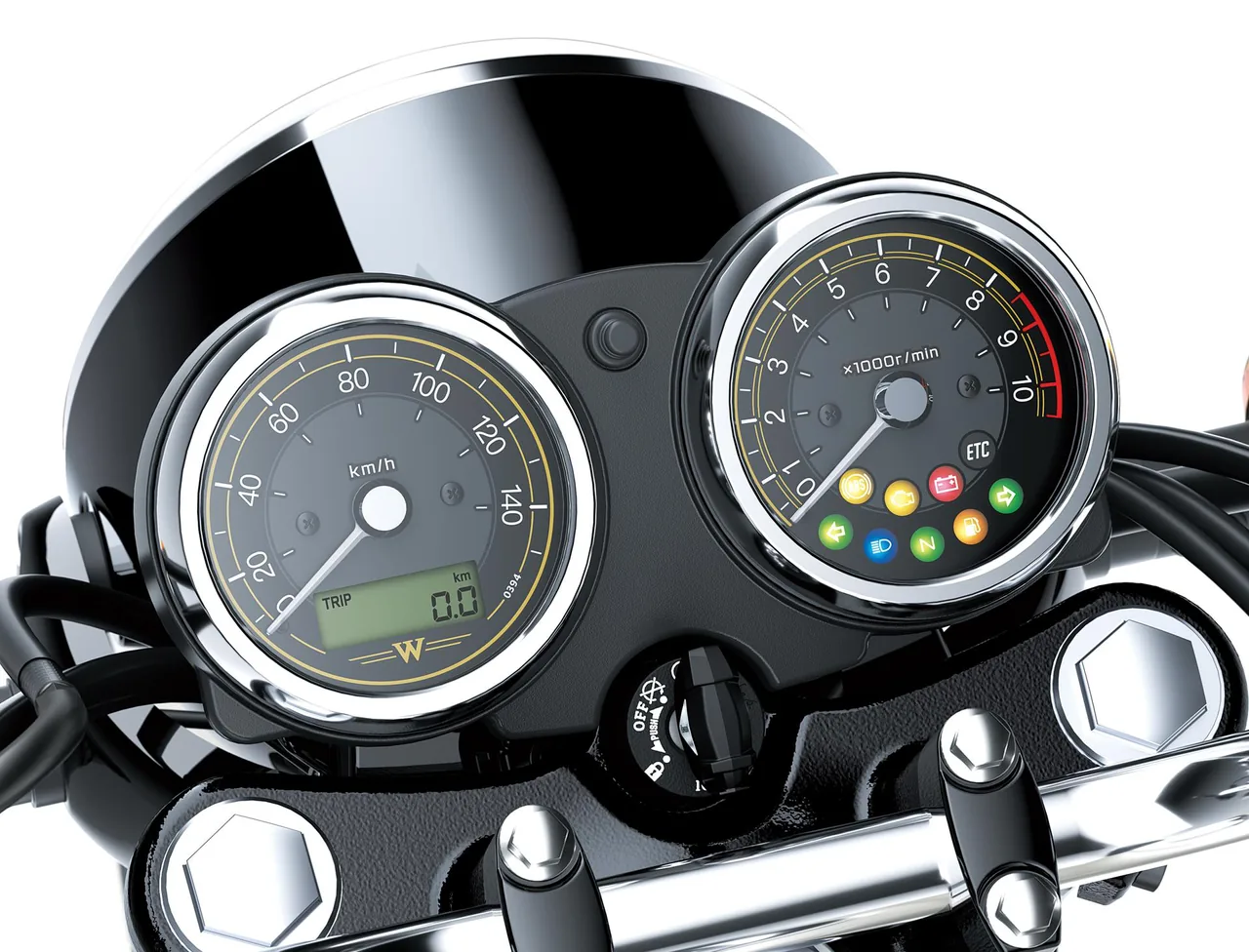 A klasszikus hangulat a részletekben él. A léghűtéses motor vintage stílusban, a hagyományos műszerek, a retro jellegű világítás és az ikonikus, csepp alakú üzemanyagtartály 3D-emblémával mind azt a „régi iskola” érzést hozzák, amitől a W-széria különleges. Ehhez társul a W-sorozatra jellemző kényelmes üléshelyzet, ami nem fáraszt, inkább arra csábít, hogy csak menj, nézelődj és élvezd a motorozás egyszerű örömét. Az elegáns kipufogó finoman hangolt hangzással teszi teljessé a hangulatot: nem harsány, inkább karakteres és korhű, pont úgy, ahogy egy klasszikus stílusú motorhoz illik.